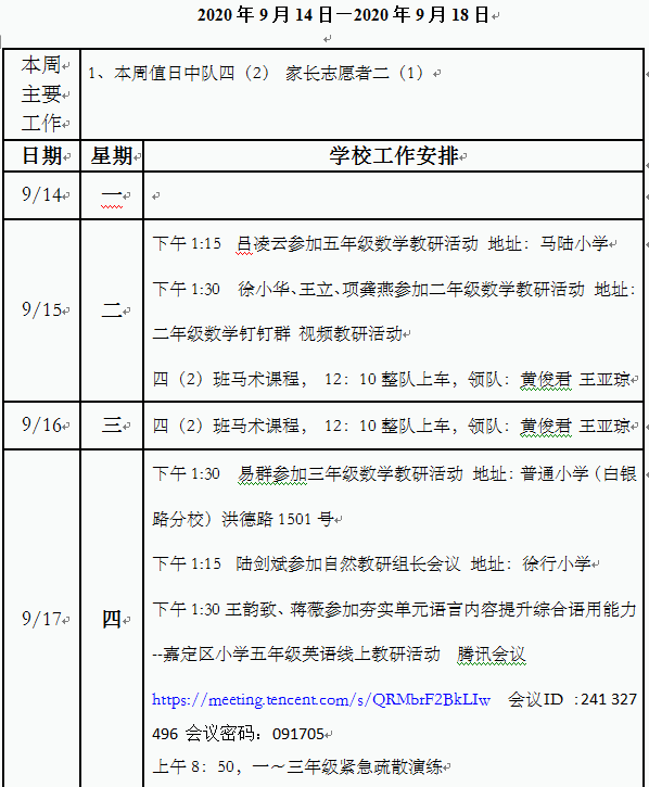 2020学年第一学期第3周工作安排(小学部)